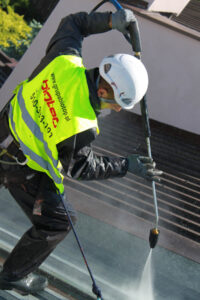 Die Dachreinigung muss nicht unter besonders günstigen Witterungsbedingungen stattfinden, wie dies beim Streichen der Fall ist, bei dem die Dienstleistung unter den vom Farbhersteller angegebenen Bedingungen durchgeführt werden muss.